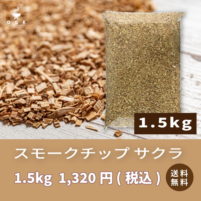 サクラの木で作られたスモークチップです。強い香りが特徴で、豚肉や羊肉、魚などのクセのある食材と相性がいいです。